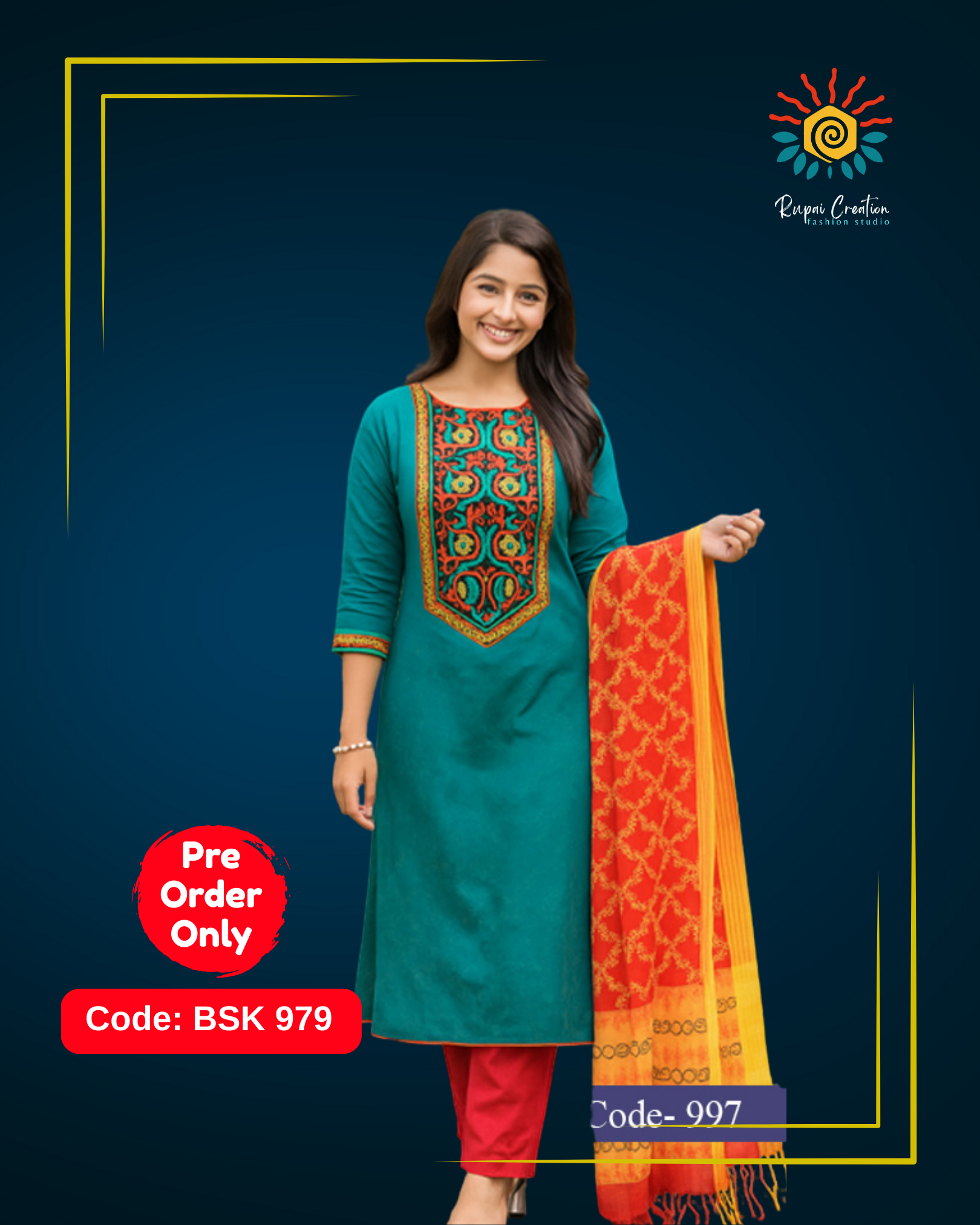 Set Includes: Kameez, Salwar & Orna (Scarf)